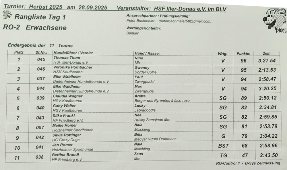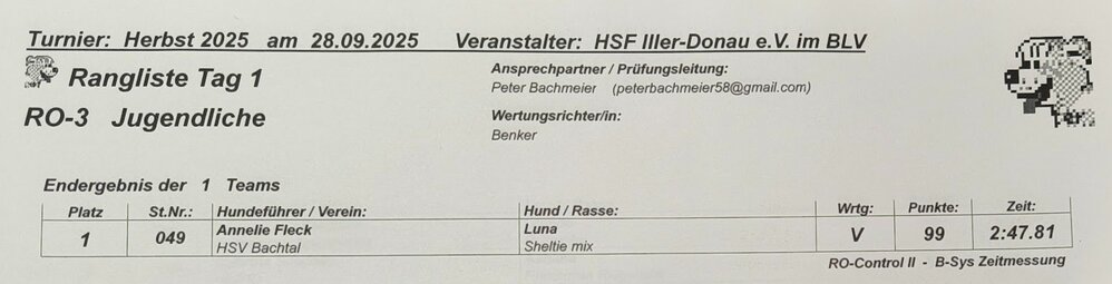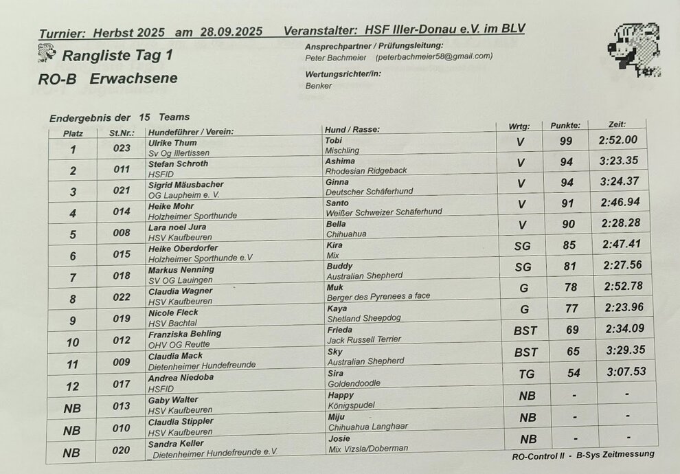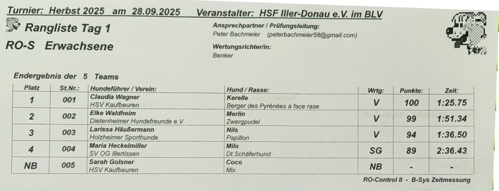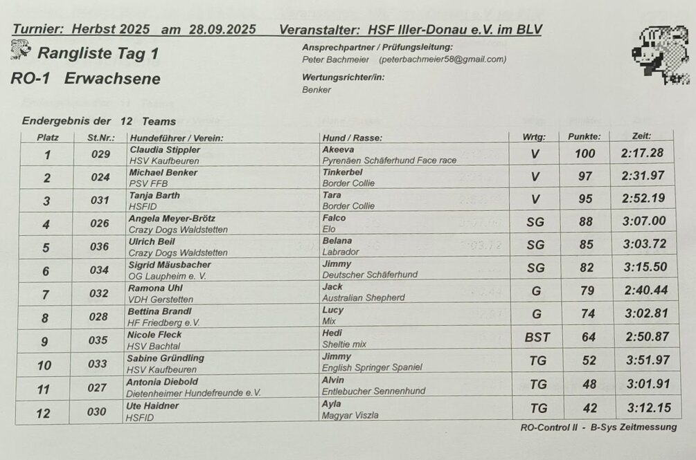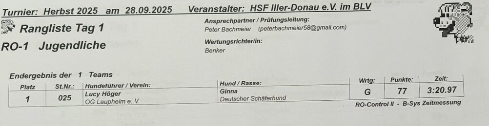 Info Rally Obedience Turnier 2025_06_01: Ergebnisse